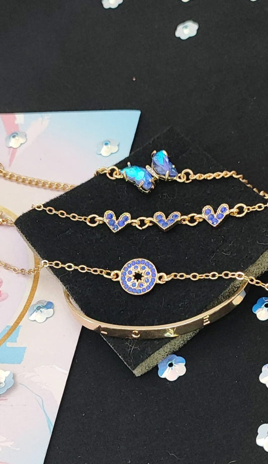 Set Pulseras x4 Destellos Zafiro 💙 | Doradas con Detalles en Azul