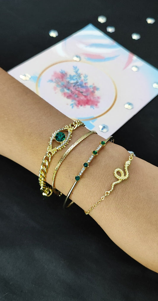 Set Pulseras x4 Esplendor Esmeralda 💚 | Doradas con Detalles Verde