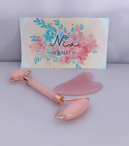 Relaja y rejuvenece tu piel con el kit "Rose Glow". Incluye un rodillo facial de cuarzo y una herramienta Gua Sha para un cuidado facial premium.
